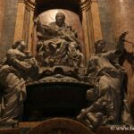 L’intérieur est attribué au Bernin qui travailla dans la basilique pendant vingt ans. Nous lui devons aussi la conception de la place Saint-Pierre avec son étonnante quadruple colonnade.